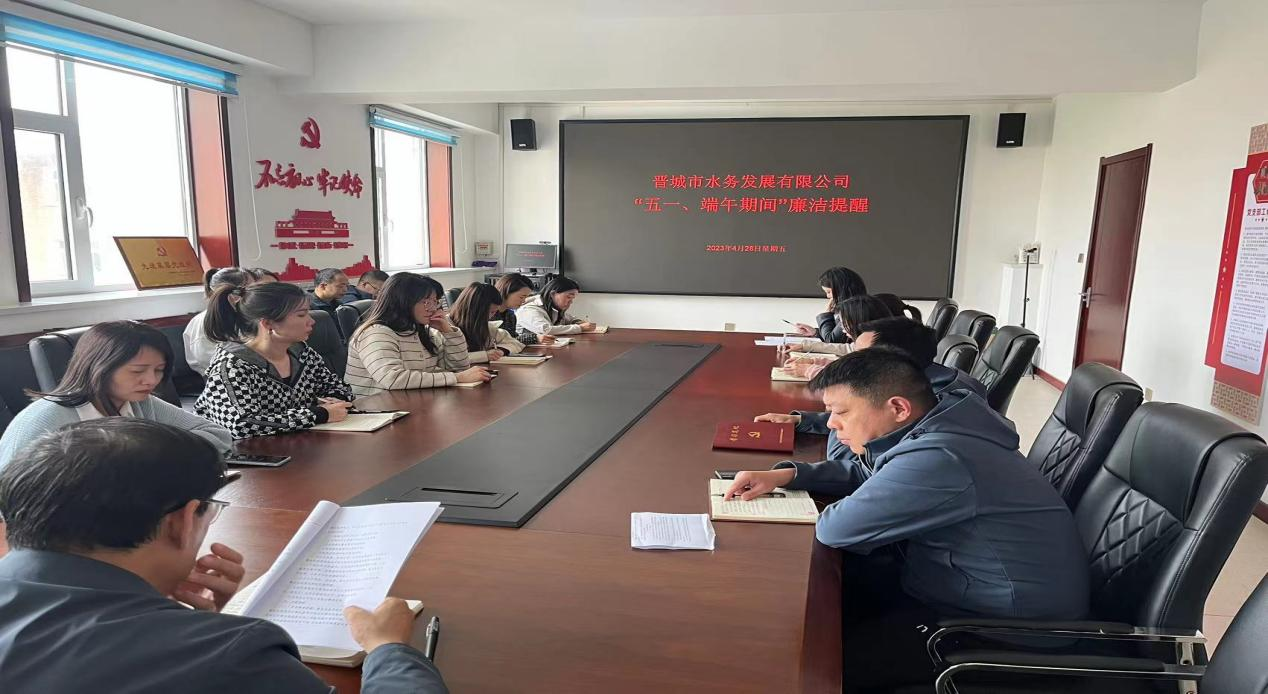 2023年五一、端午將至,為落實中央紀委國家監(jiān)委和省紀委監(jiān)委有關(guān)要求,切實做好五一、端午節(jié)日期間落實中央八項規(guī)定精神、糾“四風”樹新風工作,4月28日,晉城市水務(wù)發(fā)展有限公司組織全體干部職工召開“五一、端午期間”廉潔提醒談話,會議由公司黨支部書記、董事長潘軍主持。